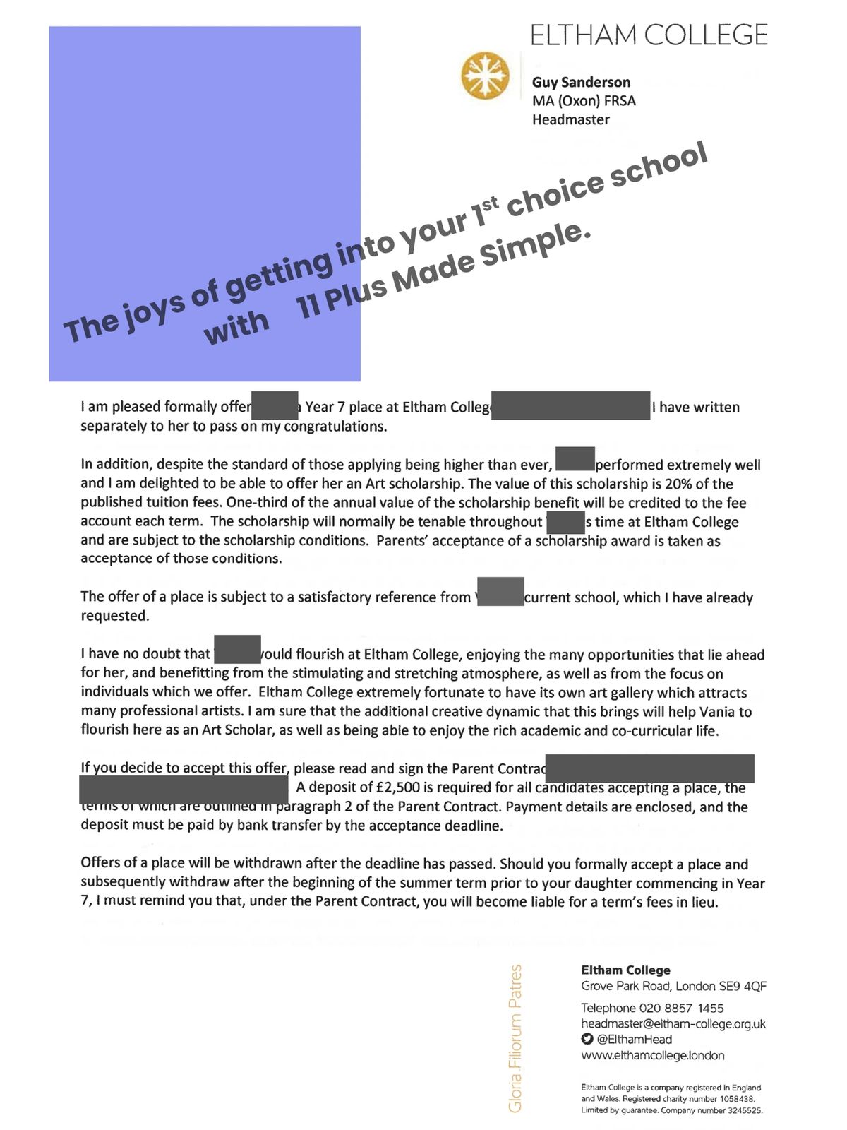 "This is more than just a place at a top school. The dedication, support and clear plan gave our child the confidence to achieve this exceptional result."